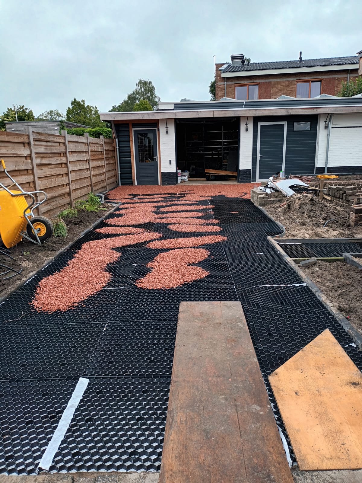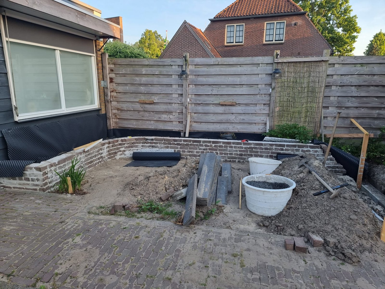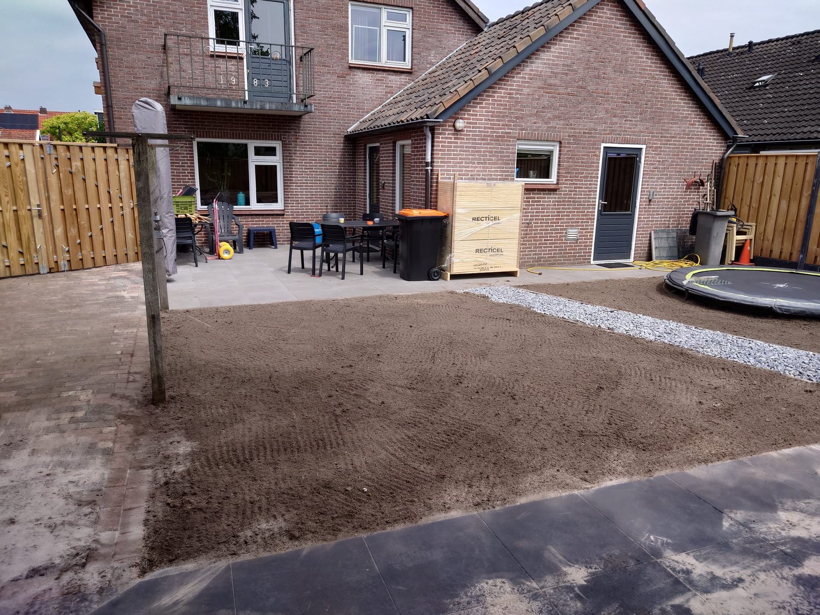 Een verzakte tuin komt vaak door slechte afwatering of verzakkende grond. Bij Gerbert Barink Hoveniersbedrijf in Lochem herstellen we verzakte tuinen door de ondergrond opnieuw op te bouwen en te verdichten. We brengen een stabiele fundering aan en leggen bestrating en beplanting opnieuw aan, zodat uw tuin er weer strak en verzorgd uitziet – en jarenlang goed blijft liggen.